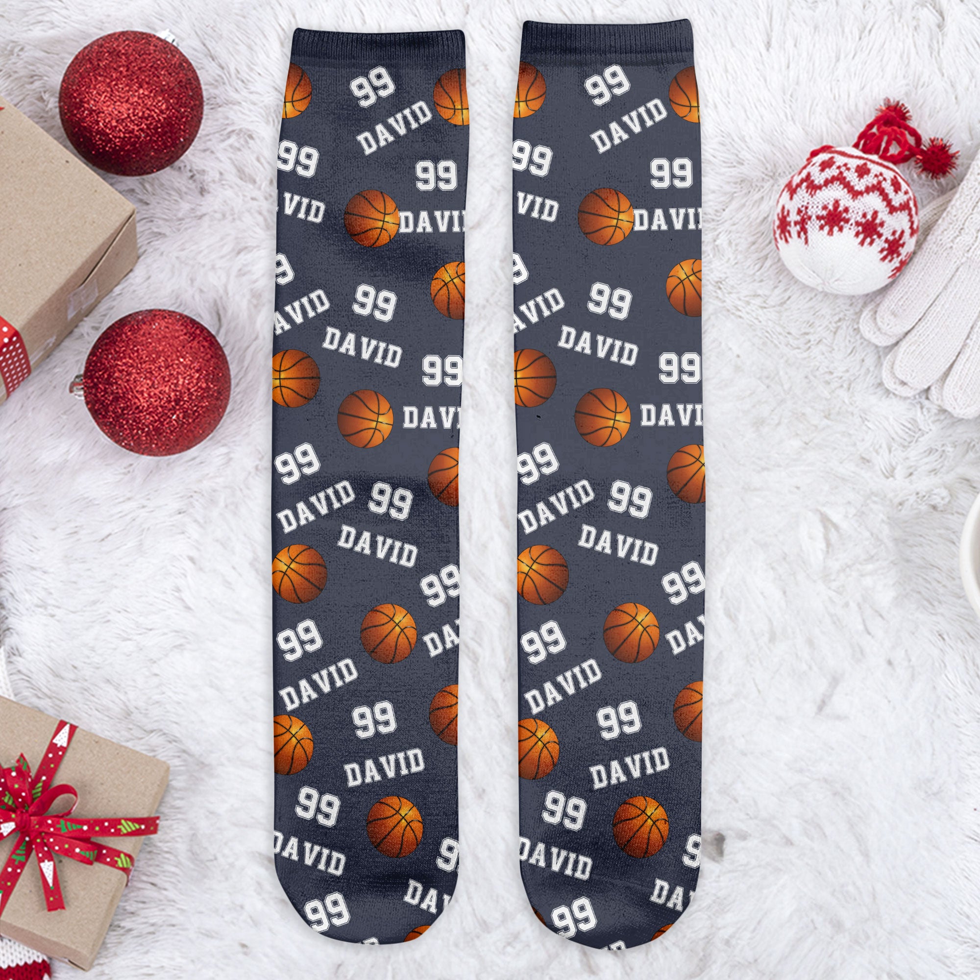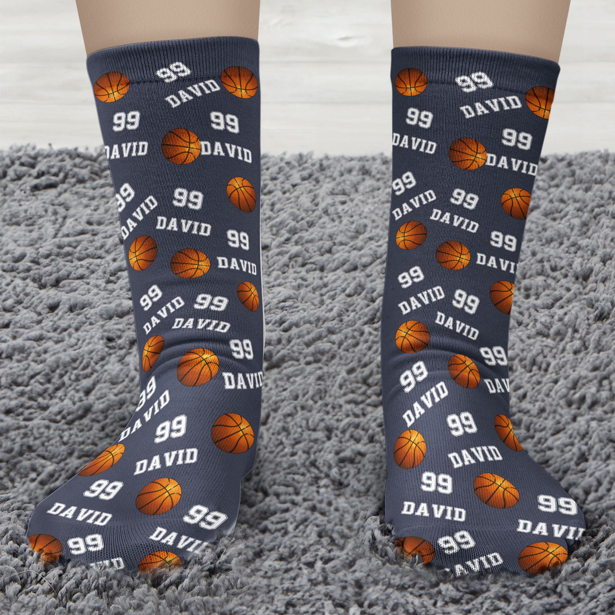 • Basketball Custom Name, Number - Personalized Crew Socks