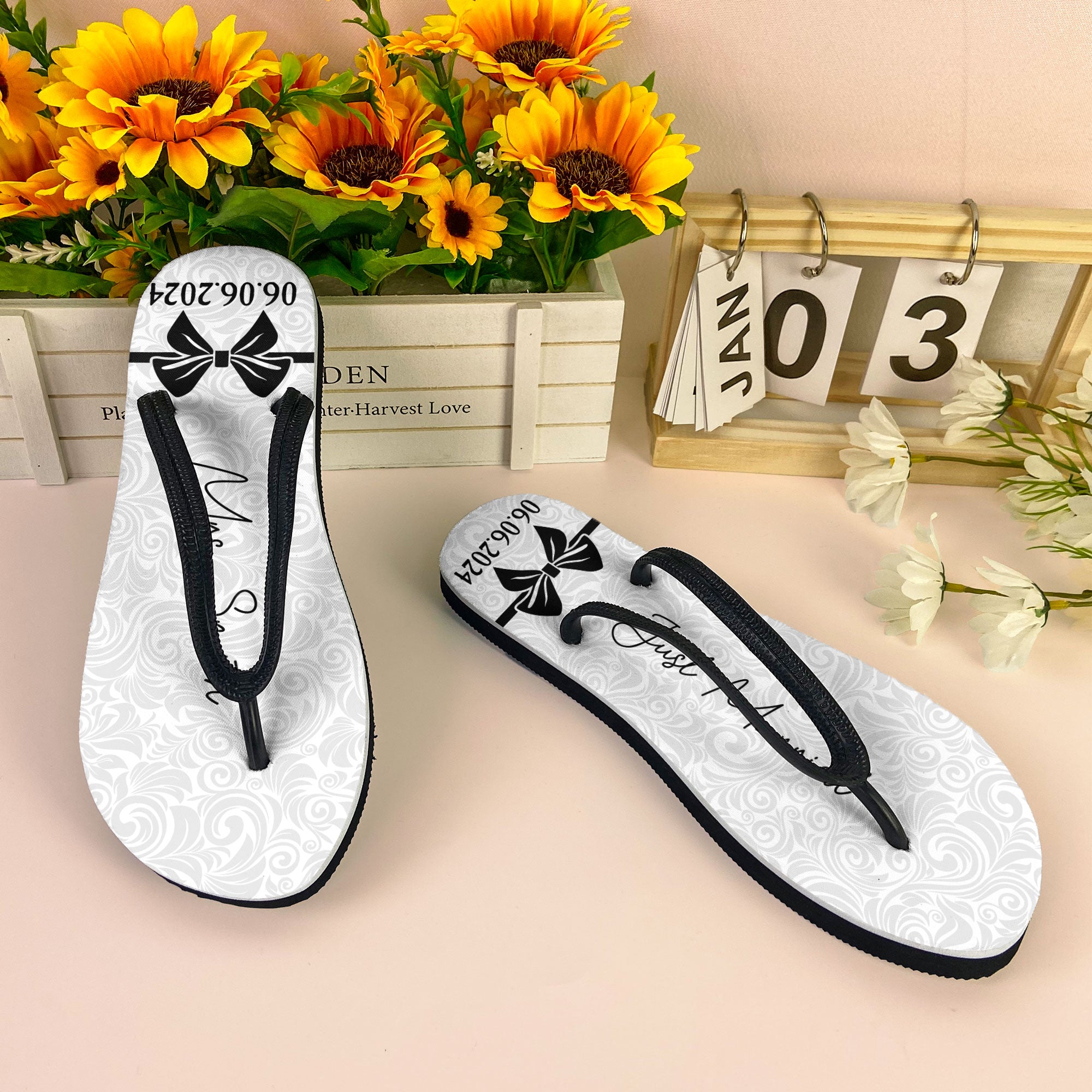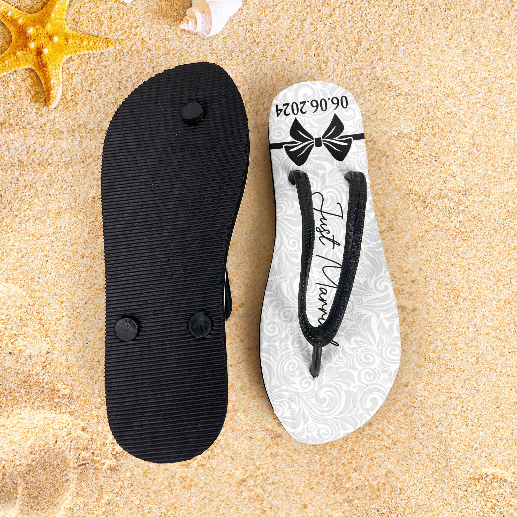 Celebrate your love and every step you take together with our Personalized Couple Matching Flip Flops. Perfect for newlyweds, these flip flops feature a charming 'Just Married' design, customizable with your names and wedding date. Whether you're lounging by the pool on your honeymoon, enjoying an anniversary trip, or just taking a romantic vacation, these flip flops add a special touch to your adventures.