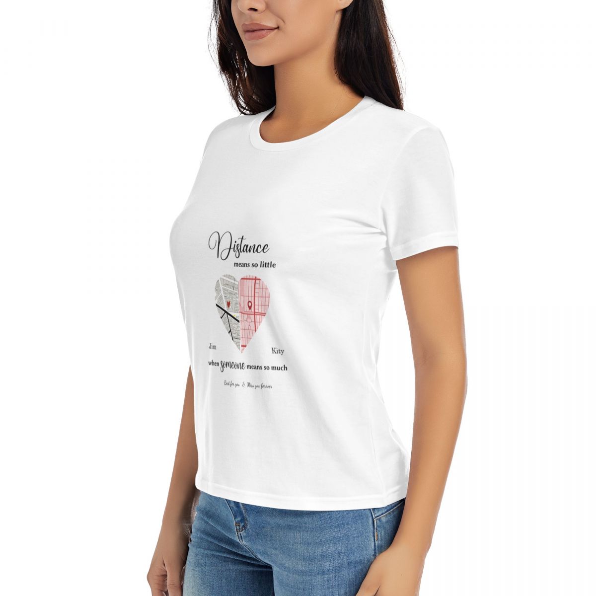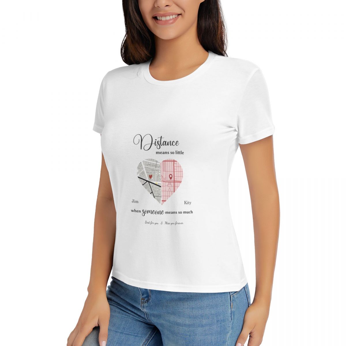 Personalize your tee with a heart-shaped map showing the location that means the most to you. Whether it’s your hometown, where your partner lives, or where your story began, the map serves as a sweet tribute to meaningful places and moments.
