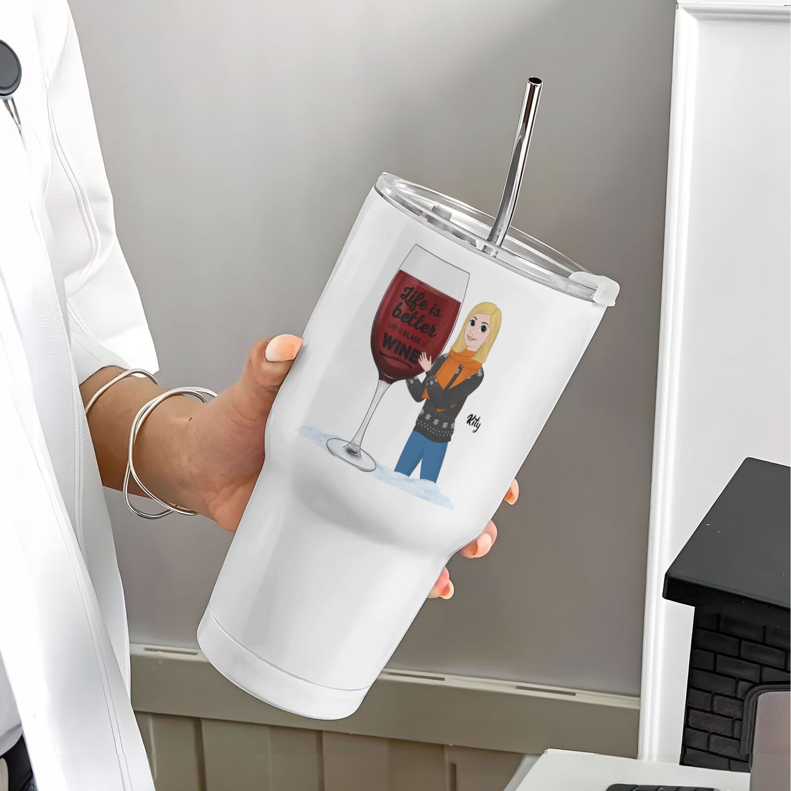 Make it your own with the text “Life is better with a glass of wine.” Whether you’re a wine lover or want to spread some good vibes, this cheerful quote is sure to bring a smile to your face.