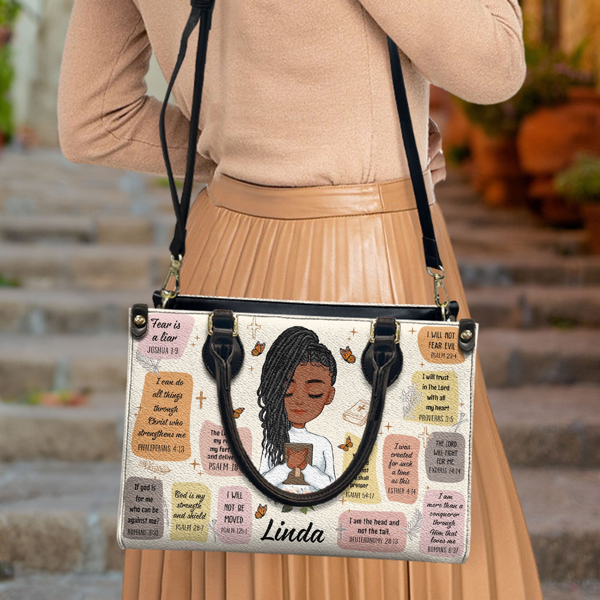 Embrace faith with our Christian Bible Verse Affirmations - Personalized Leather Bag. This stylish gift is perfect for women who seek inspiration from God's words. Carry it with grace and style, cherishing the uplifting affirmations on its surface. A constant reminder of faith and love. Ideal for birthdays and special occasions. Personalized Leather Bag, a heartfelt addition to our collection of Christian gifts for women. This beautifully crafted bag is the perfect birthday gift for Christians and a wonderful religious gift for women, including moms, daughters, and friends.
