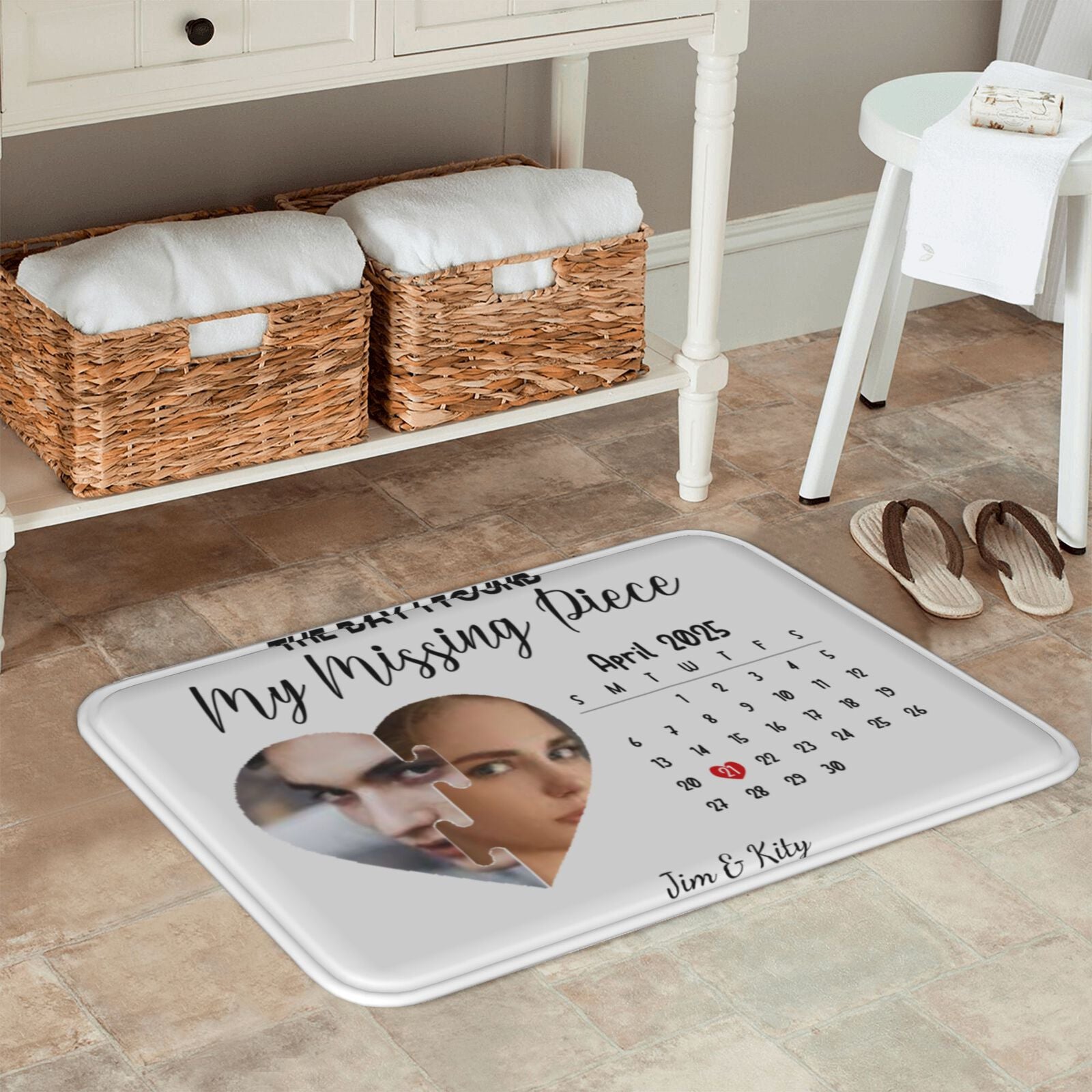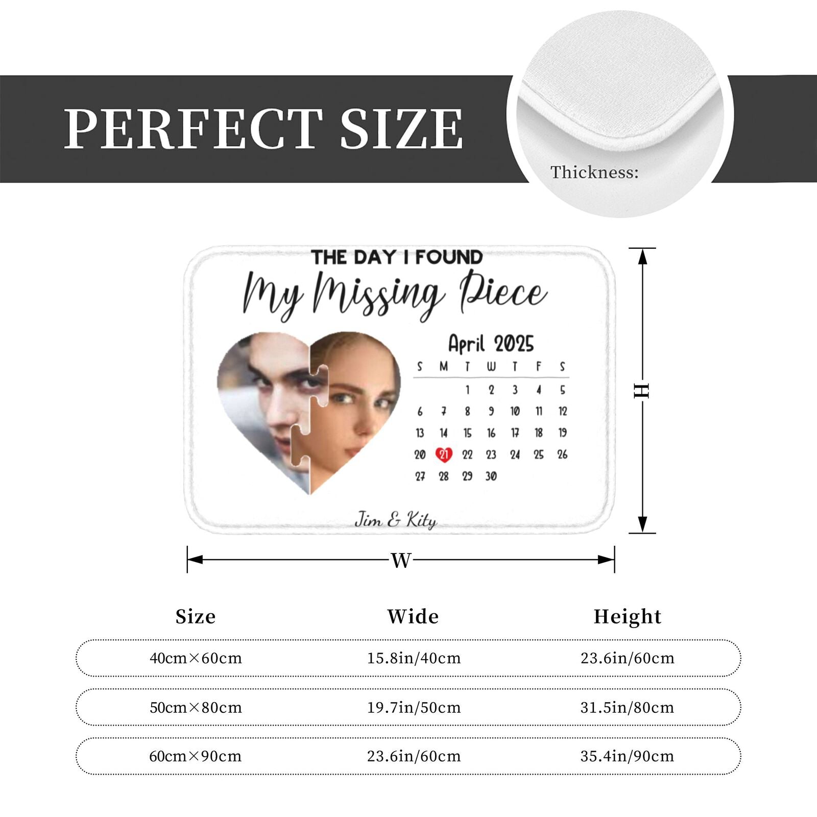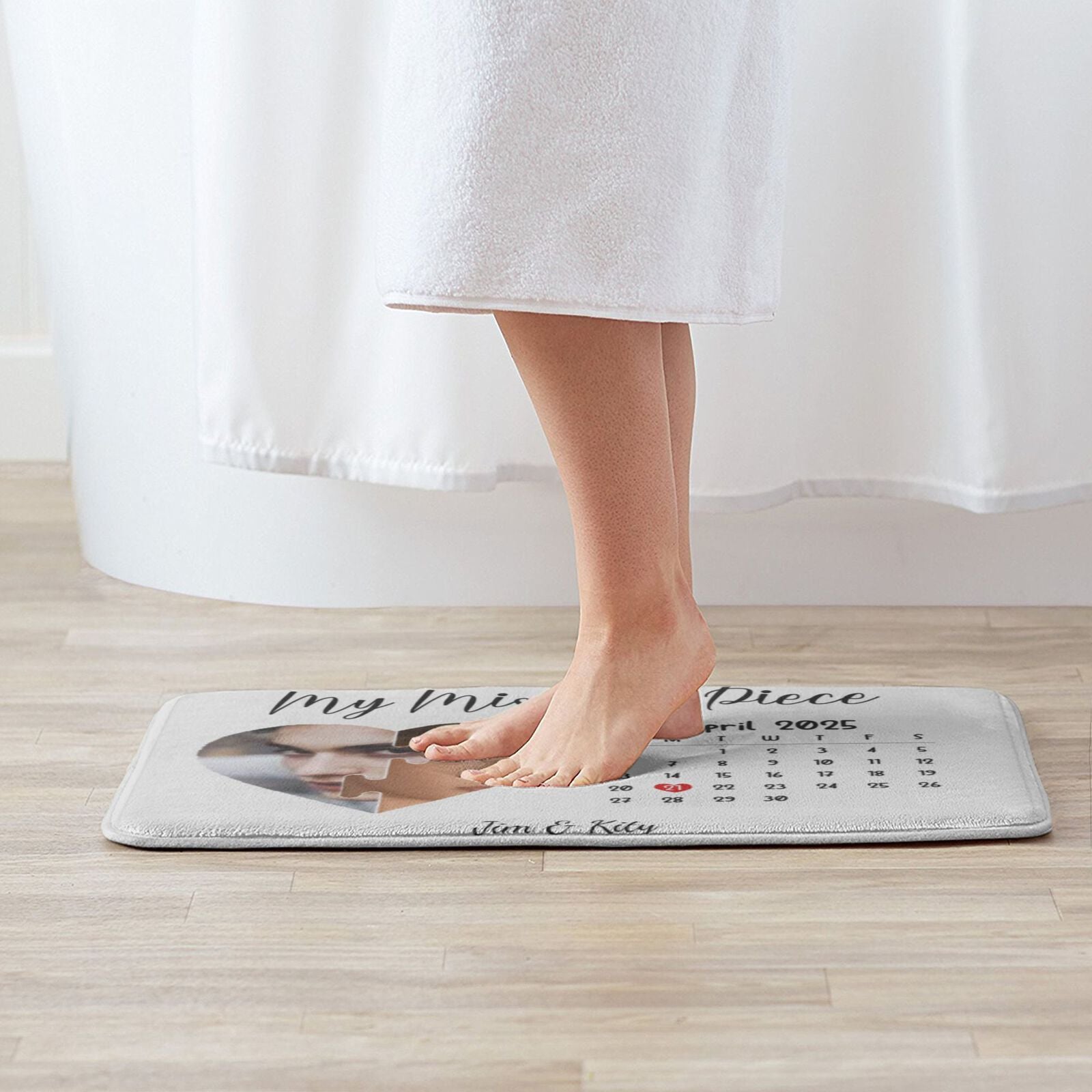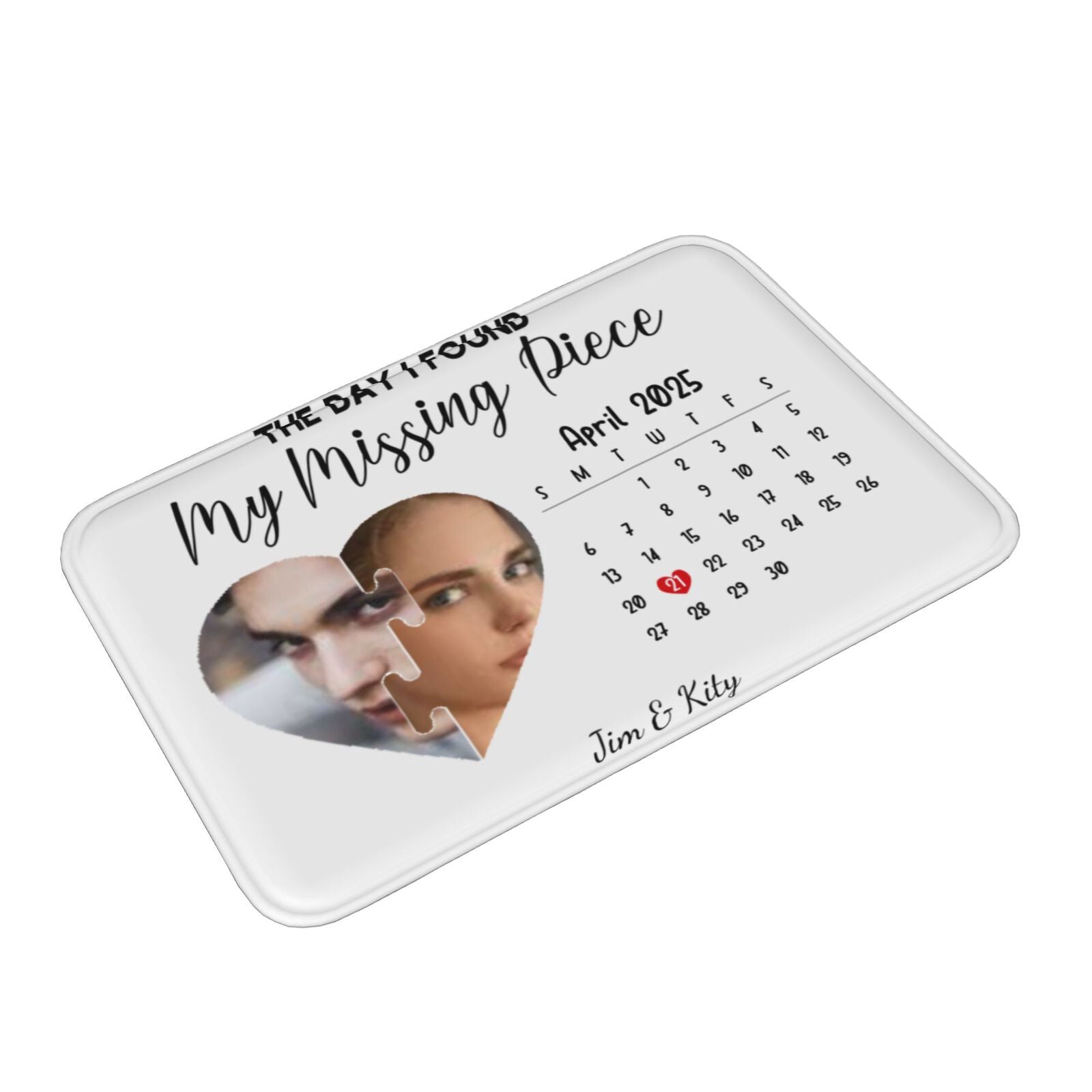 To further personalize the mat, customers can print the date when they met in a charming calendar-style format. This nostalgic touch highlights the specific day that marked the beginning of their love story. The date can be designed in a way that blends seamlessly with the overall aesthetic, creating a beautiful tribute to that unforgettable moment.
