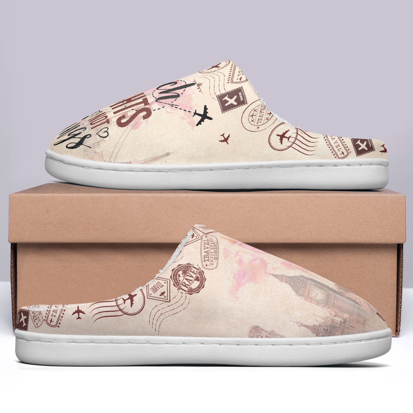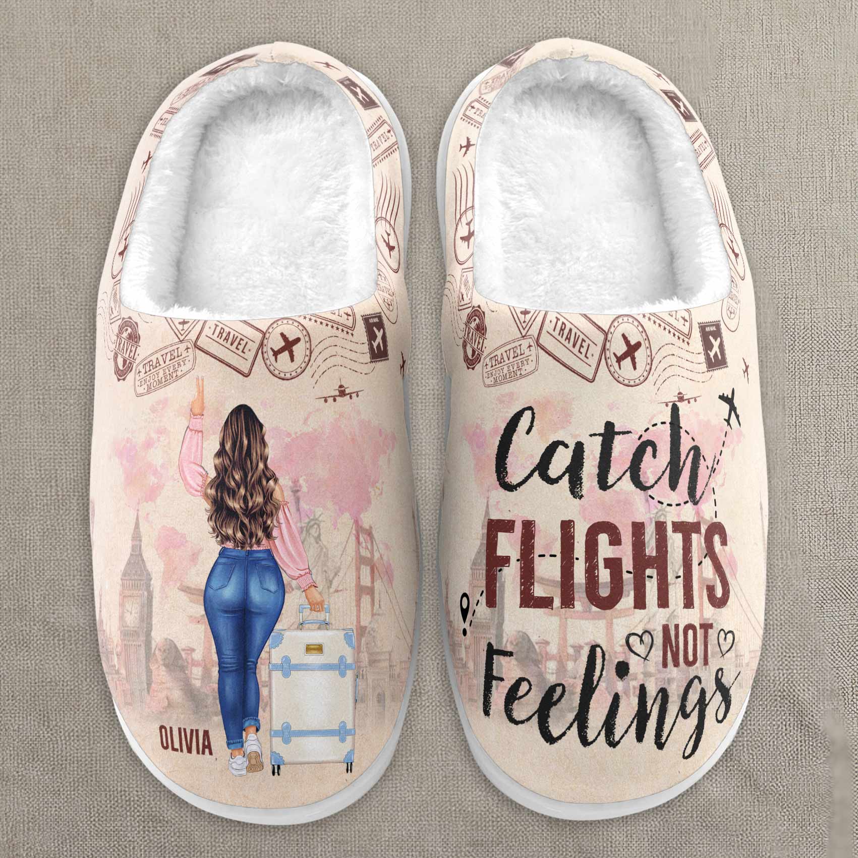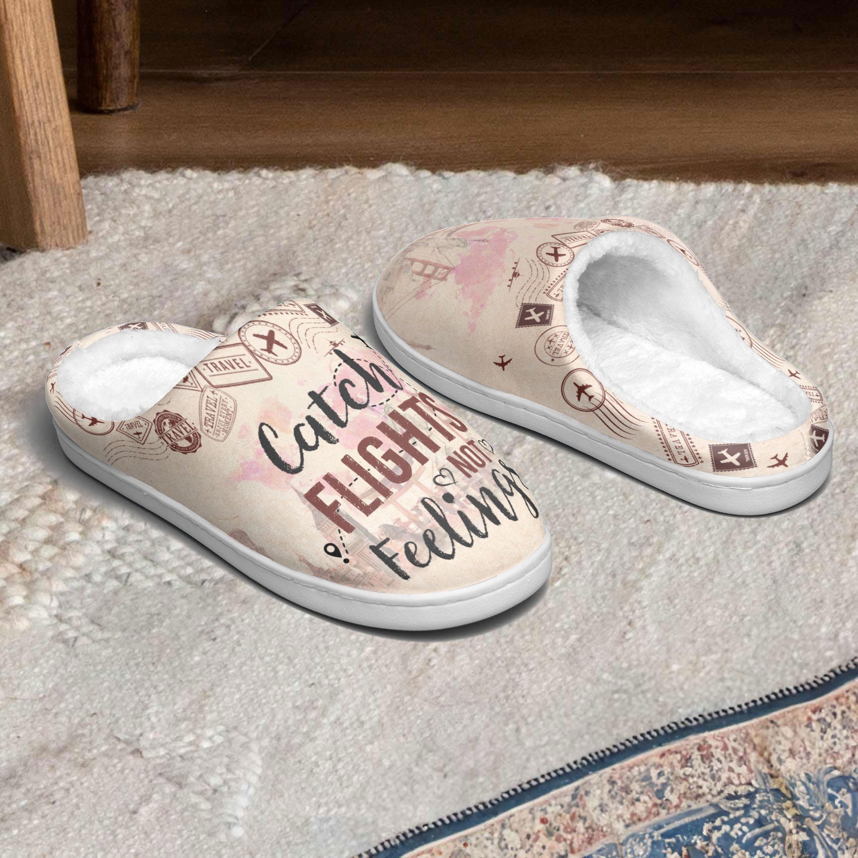MESSAGE: Step into a world of comfort and adventure with Catch Flights Not Feelings Personalized Slippers!
