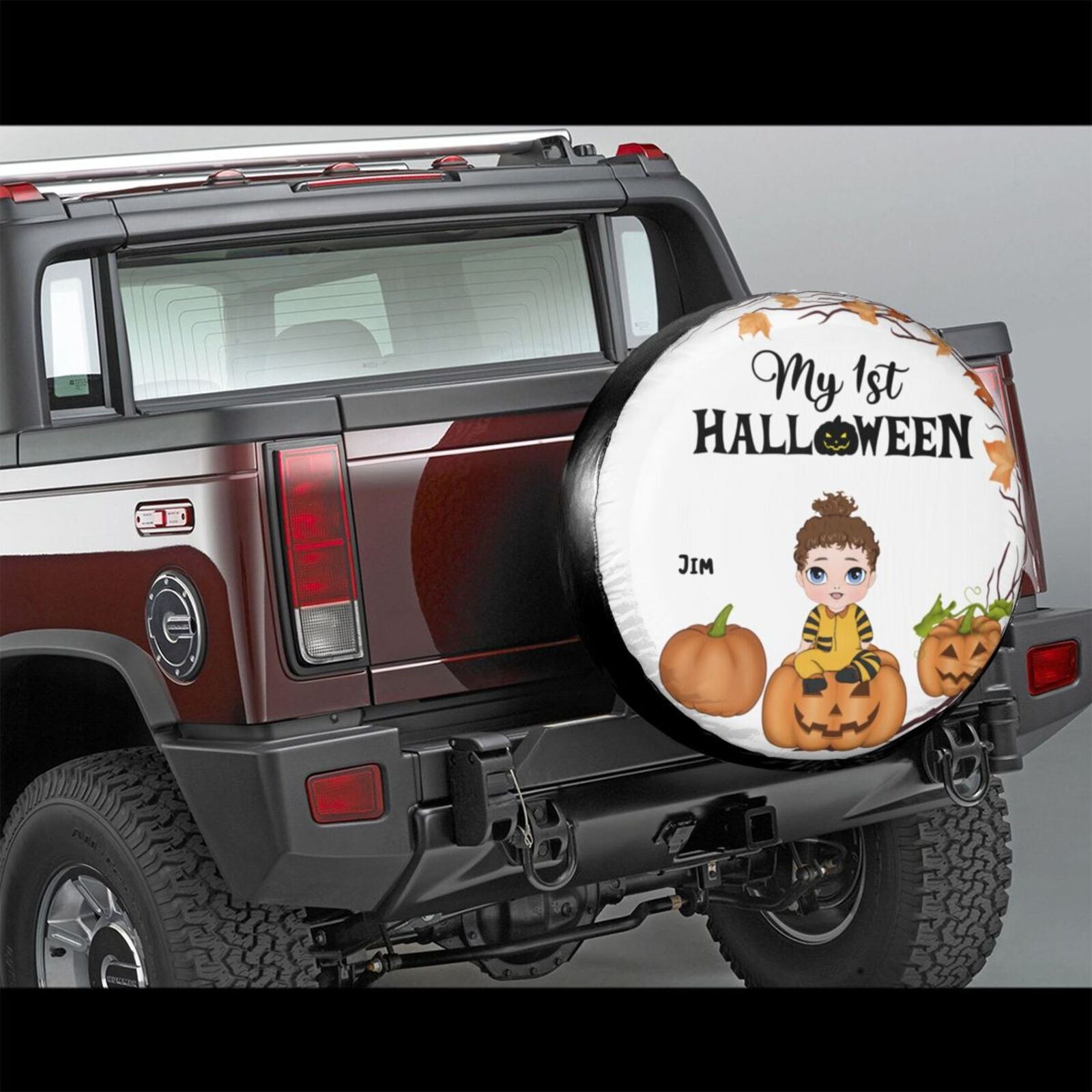 Celebrate your little one’s first Halloween in a unique way with our customizable Tire Cover. This fun and festive cover allows you to personalize your vehicle with a heartwarming message and a cute design that’s sure to stand out. Perfect for parents who want to add a touch of personality to their car while commemorating this special milestone!