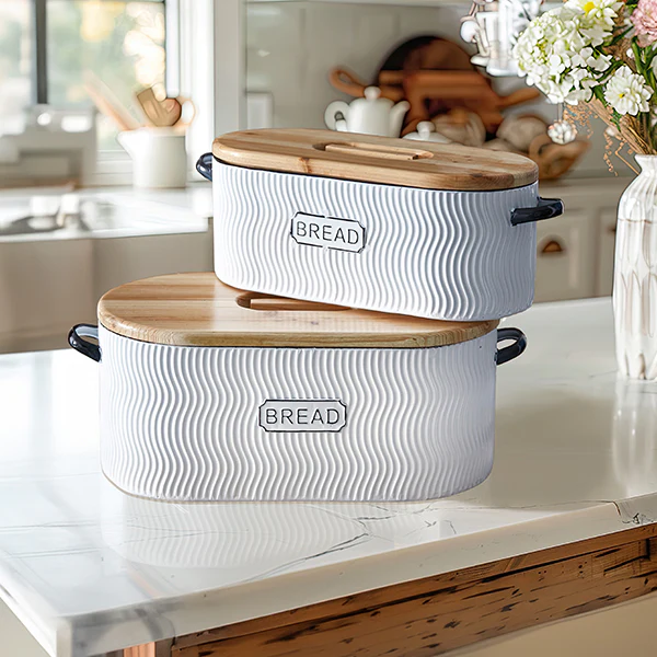 Wooden Lid: Each bread box comes with a charming wooden lid. The lid not only adds a touch of modern farmhouse style but also provides a secure fit to keep your goodies protected.