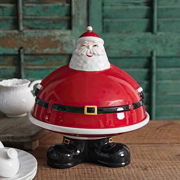 Remember to leave some cookies out for the jolly guy! Introducing the Winking Santa Dessert Stand with Removable Lid, the ultimate holiday centerpiece that’s sure to bring a smile to everyone’s face. This delightful dessert stand features Santa himself, giving a cheeky wink as he guards your sweet treats.